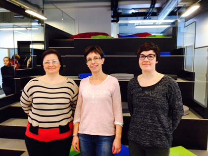 Kuvassa vasemmalta alkaen; ratamestari Minna Suuriniemi, koulutuomari Sirpa Ruojärvi ja estetaitotuomari Minna Lehtonen