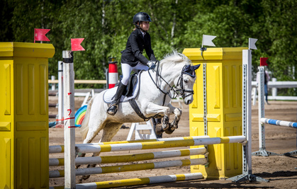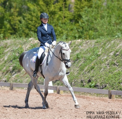 Taitava nuori suomenpienhevonen Vähäläntäne taiteili tuplavoiton Ahlströmin tallin koulukisoista, kuskina onnellinen omistaja Sanni Väisänen. 2015